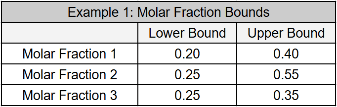 We generate samples for a chemical stream with the molar fraction ranges listed in the table below to highlight the differences between the two methods.
