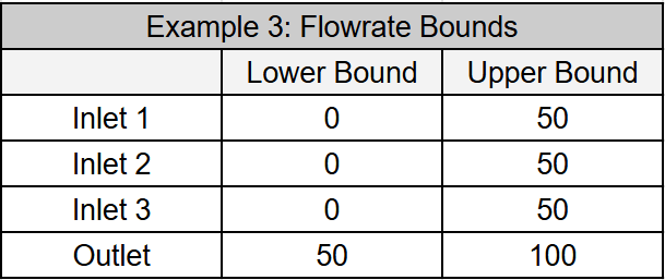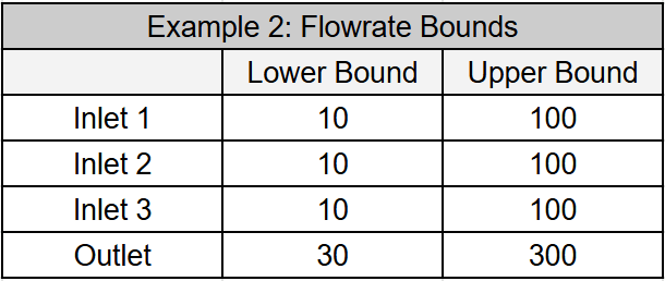 In this final example, we revisit Example 2. We now treat the input parameters (inlet flow rates) and the composite parameter (outlet flow rate) as equally important without prioritizing one over the other. The table below presents new parameter bounds. Note that some combinations of inlet flow rates may produce outlet flow rates that fall outside these defined bounds.